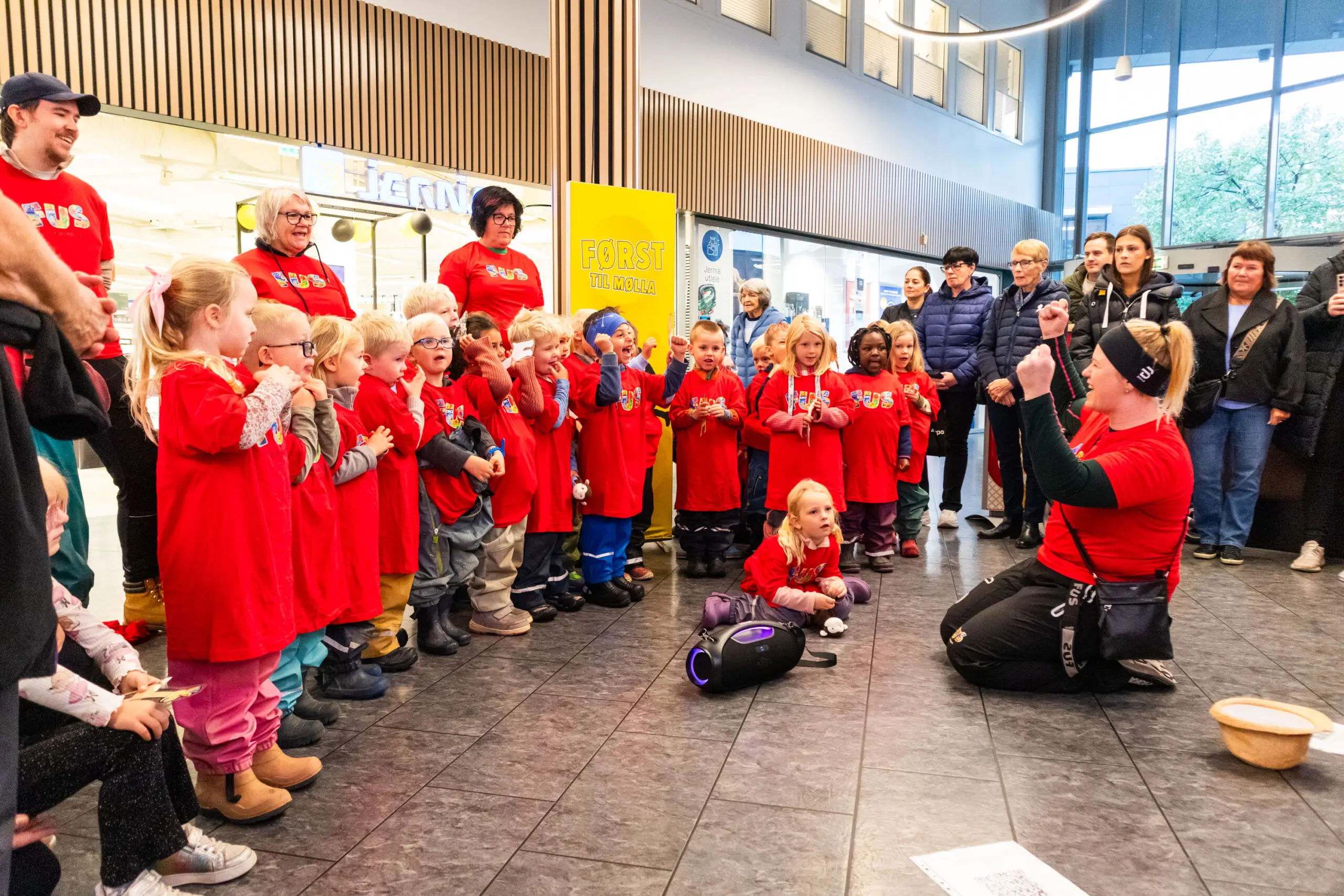 Barna i Øverkvern FUS Barnehage i Brumunddal er blant dem som bidrar. De har hatt konsert på kjøpesenter for å samle inn penger.