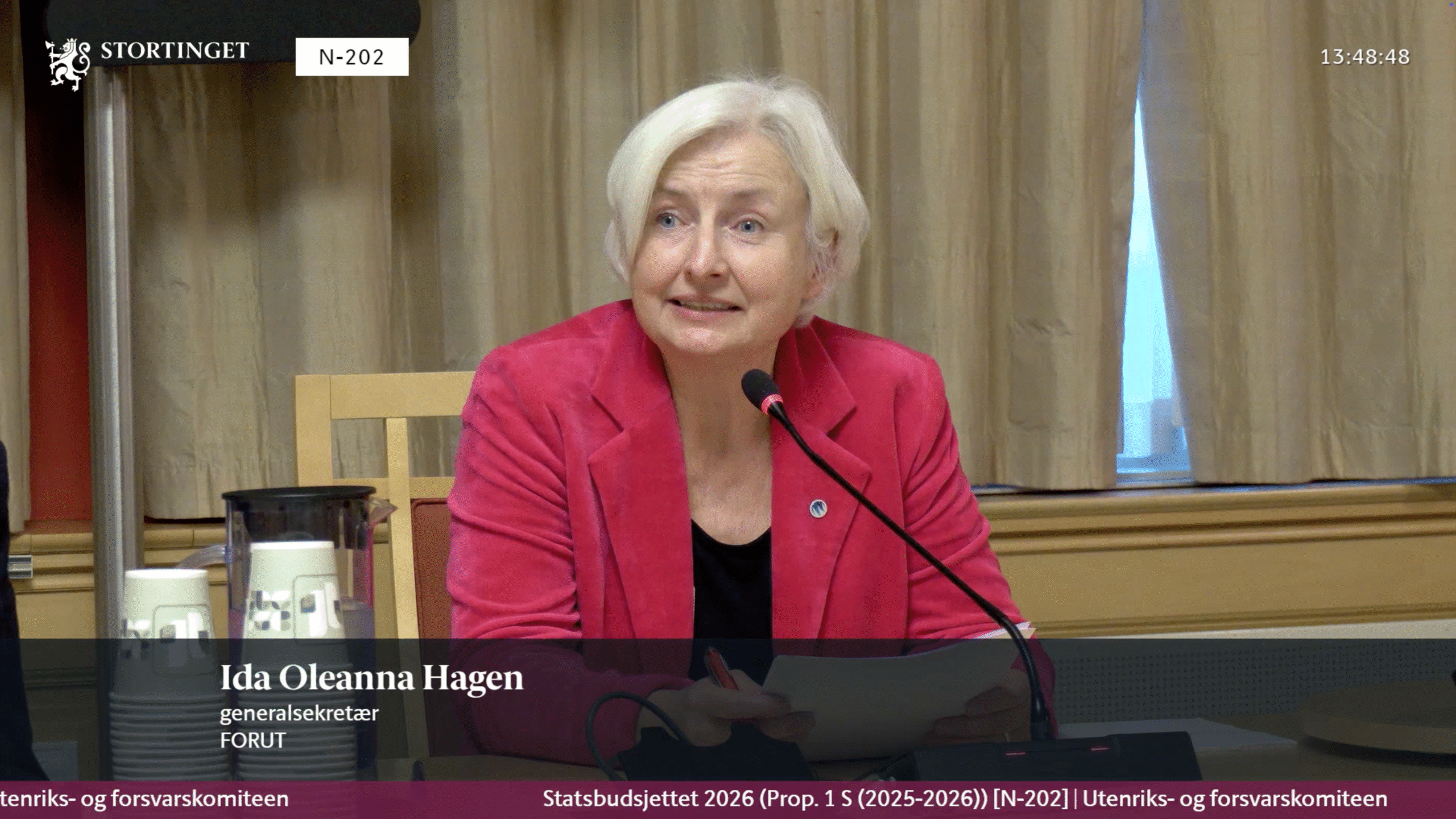 Det sa Ida Oleanna Hagen, generalsekretær i FORUT, da hun deltok på høring om statsbudsjettet i utenrikskomiteen på Stortinget mandag 27. oktober.
