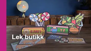 Vi har samlet ulike leker og spill fra de siste årenes barneaksjoner. Flere er brettspill som kan skrives ut på en vanlig fargeskriver.